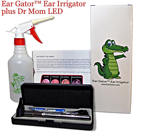 - Ear Gator Ear Irrigator plus Ear Wax Curettes plus Third Generation Dr Mom Slimline Stainless LED Pocket Otoscope in HARD Travel CASE