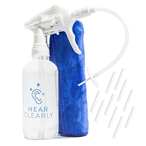 EFFECTIVE AND SAFE Your body naturally produces earwax to protect the ear from dust, foreign particles, microorganisms and other issues, however too much of it can also cause problems. Impacted earwax can lead to hearing issues, earaches, dizziness and much more. When issues like these arise, many people turn to cotton swabs, which can actually damage the ear and lead to worse blockage. The Hear Clearly earwax remover irrigation tool is the safe in home solution to clearing unwanted wax from your ears. QUICK AND EASY The Hear Clearly earwax remover is a unique irrigation tool designed specifically to clean ears and remove impacted earwax. Our spray bottle design is equipped with a plastic tube and a splash guard to more effectively rinse out and clean your ears. To use, just insert the tube into the ear canal and use your other hand to squeeze the bottle, which creates an oscillating stream of water that loosens earwax and removes debris from the canal NO MORE DROPS For some, applying ear drops can be a stressful, painful and even traumatic experience. With the Hear Clearly irrigation tool, you can say goodbye to ear drops for good. Our tool uses a solution of warm water and over the counter hydrogen peroxide that safely and effectively cleans ears. WASHING KIT Unlike other ear cleaning tools, you get everything you need all at once with Hear Clearly. Our kit includes 10 disposable tips to prevent the spread of bacteria and germs as well as a plush towel to collect excess water. INSTRUCTIONS INCLUDED Far too many ear cleaning tools and devices are too hard to use at home, or just flat out don't work properly. With the Hear Clearly ear wax irrigation tool, you can be sure our product was created to the highest possible standards. We also include an easy to follow instruction book to help make using our irrigation tool as easy as possible.