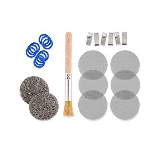 EASY VALVE Wear&Tear set for VOLCANO Package Including: 1 x Normal Screen Set (6 screens) 1 x Cleaning Brush 1 x Liquid Pad Set (2 pads) 6 x Filling Chamber Clip 10 x Filling Chamber Ring (blue)