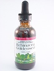Echinacea - Goldenseal Extract Organic by Eclectic Institute 2 oz Liquid Echinacea-Goldenseal Certified Organically Grown 2 oz. Fresh organically grown Echinacea angustifolia root 1 1 35 . Fresh organically grown Goldenseal ( Hydrastis canadensis ) root 1 1 25 . Fresh organically grown Echinacea purpurea root 1 1 20 . Fresh organically grown Echinacea purpurea juice of tops 1 1 20 . Organic Grape Alcohol Content 40 .