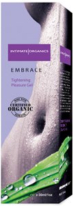 Embrace Tightening Gel - Alum Free (1oz) Intimate Organics tightening pleasure gel contains a blend of certified organic extracts and natural capsicum in a water, sunflower and almond oil base. Our unique formula causes the vaginal tissue to temporary contract. This gives tightness and warmth to increase pleasure for both partners. Latex condom friendly. Safe to digest. This product does NOT contain alum! Product photo may not exactly match the product offered for sale. Please refer to the product description.
