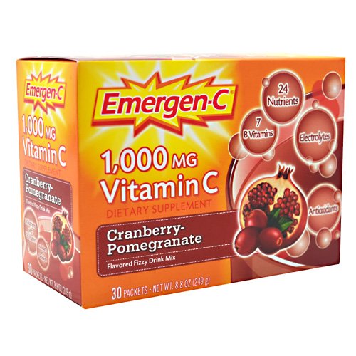 Naturally, It's Good for You!Superfruit-powered Cranberry Pomegranate Emergen-C is a little tangy, a little sweet, and a whole lotta fruity fun. With each sip, you can feel the 24 nutrients flow through your body in a wave of Emergen-C rejuvenation. If feeling good is your thing, you found the right box.Health Boost -- 1,000 mg of vitamins C, zinc, quercetin and antioxidants support your immune system.Energy Boost -- 7 B Vitamins including B1, B2 B3, B6 & B12 enhance energy naturallyno caffeine, no crash.Electrolyte Boost -- Great for post-workout, replace key electrolytes lost through perspiration.