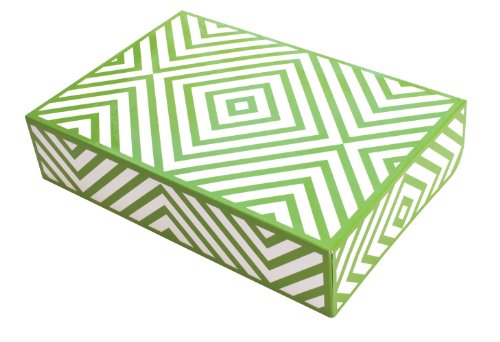 Entertaining with Caspari Paper Gift Boxes in Chevron Green. These Gift Boxes are made from food grade paperboard and features a lift out tray in a complimentary solid color. Each assembled box measures 10-1/2-Inch by 7-Inch by 2-1/2-Inch. While these boxes are prefect for gifting baked goods and other treats they are versatile enough to be used for apparel or anything that deserves a pretty package. Be sure to take a look at all of the items in our extensive range of gift wrap, gift bags, table top and candles. Caspari - bringing beauty, style and convenience into your home every day.