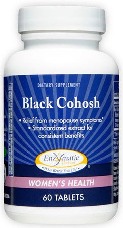 Black Cohosh - Vegetarian by Enzymatic Therapy Inc. 60 Tablet Black Cohosh (Vegetarian) Relief from menopause symptoms Standardized extract for consistent benefits Dietary Supplement Product Numbers 07906 Product Quantities 60 Tablets Natural Control for Menopausal Symptoms Reliable reputable relief from menopausal symptoms including hot flashes night sweats and mood swings Clinically studied for more than 40 years for its ability to reduce menopausal discomfort Product Nutrient Categories Herbal Recommendations One tablet in the morning and one tablet in the evening. Do not chew. Serving Size 1 Tablet Amount Serving DV Black Cohosh (Cimicifuga racemosa) 20 mg Root and Rhizome extract standardized to contain 2.5 triterpene glycosides (0.5 mg) calculated as 27-deoxyactein. Daily Value (DV) not established. Other Ingredients cellulose modified cellulose magnesium stearate lecithin peppermint leaf and carnauba wax. Contains No sugar salt yeast wheat gluten corn dairy products artificial