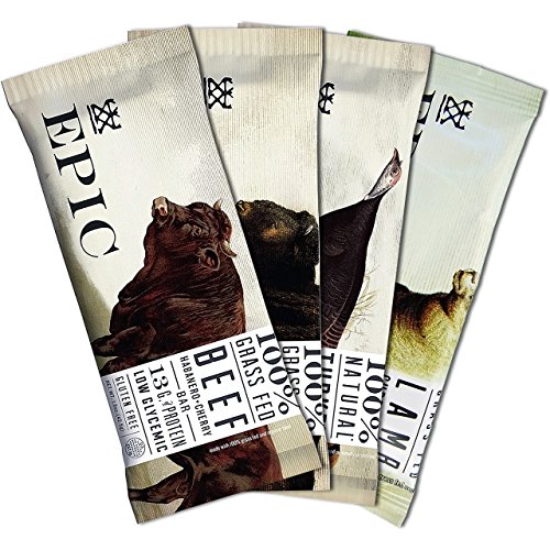 The Epic Bar is available in four great tasting fruit and real wholesome meat combos from animals that are raised in small scale natural conditions. This sample pack lets you try each of the great tasting organic grass-fed Beef, Bison, Turkey, and Lamb flavors with their own complementing melody of berries, nuts and spices. Unlike traditional protein bars that are composed of synthetically generated protein product, the Epic Bar is all natural and easier to eat than jerky.