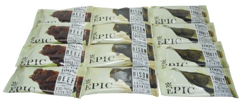 Epic Bar Variety Pack of 12, Features 4 Bars of Each Flavor. Flavors Included: Bison Uncured Bacon + Cranberry, Beef Habanero + Cherry, and Turkey Almond + Cranberry. All Bars Are Made from Grass Fed Animals. Vegetarian Fed, No Growth Hormones. Gluten Free, High In Protein, Milk Free, and Soy Free.