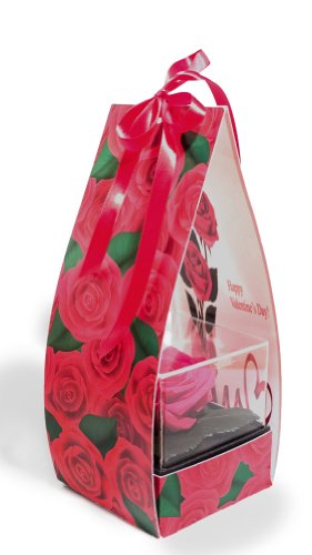 A real rose moisturized to last for a year or longer, packaged in a specially designed greeting card and wrapper. The wrapper is on the outside and the greeting card is on the inside. Wrapped and ready to give with bow and wrapping design.