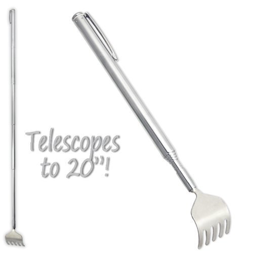 TWO PACK - New Extendable Back Scratcher. This metal scratcher extends up to 20" to provide instant relief to areas otherwise one couldn't reach. One of the ends is shaped like a hand, the other has a clip for easy storage. It is so convenient that you can take it with you anywhere. Use it at home, in the office and wherever you go! Perfect as a gift and to have it as an extra item for a spa-like treat for you or your guests! Very strong and durable item. Dimension closed: 6.75" Long Dimension extended: 20" Long Hand size: 1.25" x 1.25"