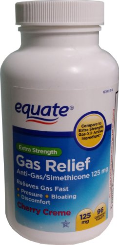 Anti-Gas/Simethicone 125mg. 96 Chewable Tablets. Relieves Gas Fast. * Pressure * Bloating * Discomfort. * Pressure * Bloating * Discomfort. Compare to Extra Strength Gas-X Active Ingredient.