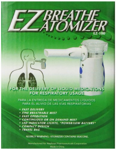The EZ Breathe Atomizer is a device that is intended to spray liquid medication in aerosol form into the air that a person will breathe. The EZ Breathe Atomizer was designed to use anywhere, anytime, at home or on the go, and will deliver a fine, breathable mist in seconds. Simple operation makes it very easy to use.