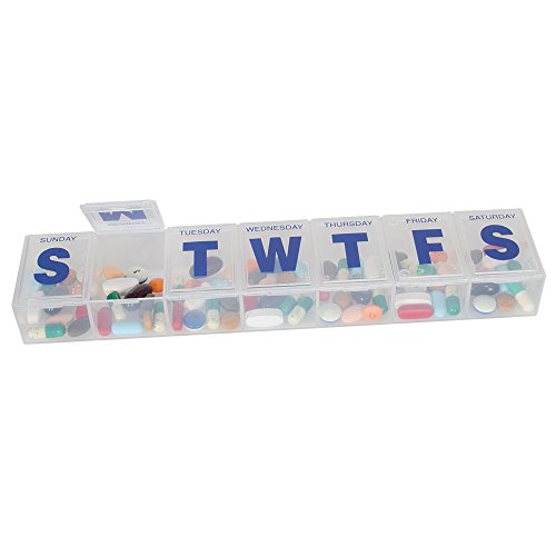Classic 7-day design helps you remember daily medications. See-through plastic lets you see if today's pills have been taken without opening the lid. Size is Jumbo 3XL.