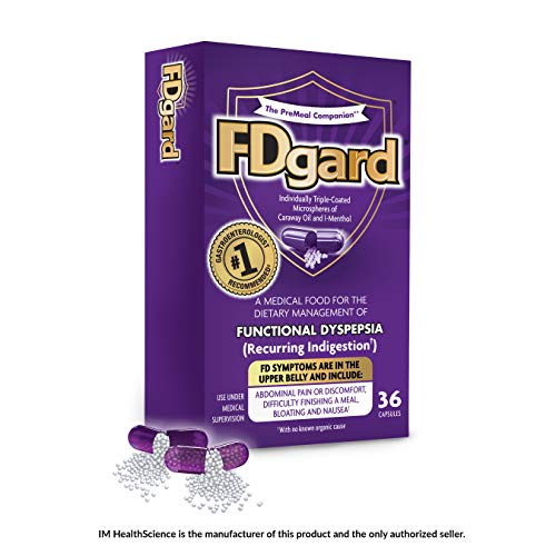 FDgard is a medical food specially formulated for the dietary management of FD (functional dyspepsia), or recurring indigestion with no known organic cause. FDgard capsules deliver individually triple-coated, targeted-release, solid-state microspheres of caraway oil and l-Menthol quickly and reliably where they are needed most in FD - the upper belly. In addition to caraway oil and l-Menthol, FDgard also provides fiber and protein. Caraway oil and peppermint oil (l-Menthol) have a history of working in FD. Until now, targeted delivery to the upper belly has posed a challenge. FDgard utilizes SST (Site-Specific Targeting) technology to deliver individually triple-coated, targeted-release, solid-state microspheres of caraway oil and l-Menthol quickly and reliably where they are needed most in FD - the upper belly.