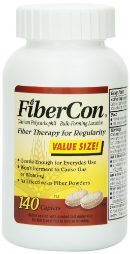 Calcium Polycarbophil. Bulk-forming Laxative. Gentle enough for everyday use. Natural action of fiber. Just as effective as fiber powders. No chemical stimulants. Doctor recommended. Compare! Recommended Starting Doses: 2 FiberCon caplets = One dose of Powder Mix. Each Caplet Contains: 122 mg Calcium.