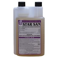 Everything you love about Five Star Sanitizer (Star San) but in an economical 32 oz container. The folks at Star San even kept the handy measuring tool built into the container making dilutions quick and easy. Star San is a go to sanitizer among home brewers, proving a true no-rinse sanitation step that requires 1 minute or less. You can even place your dilutions into a spray bottle and apply directly to surfaces you want to sanitize, stretching your juice even further. Truly this stuff is a one stop shop for killing the bugs!