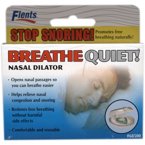 Flents Breathe Quiet! Nasal Dilator Drug-Free. Promotes free breathing naturally! Comfortably opens nasal passages so you can breathe easier. Helps relieve nasal congestion and snoring. Restores free breathing without harmful side effect. Comfortable and reusable. This simple and innovative device gently stimulates the septum to improve airflow in the nasal cavity. The Breathe Quiet! nasal dilator can be used day or night to make breathing easier. It also encourages sound, restful sleep by relieving hard breathing and snoring.