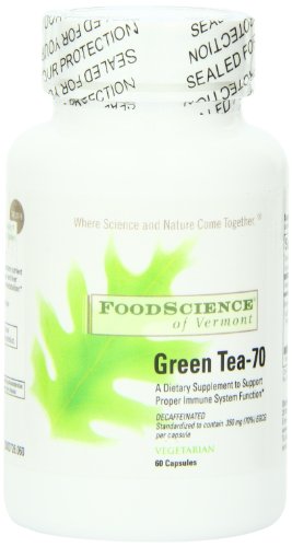 Food Science of Vermont's green tea-70 is a dietary supplement to support proper immune system function. EGCG helps to support proper liver, cardiovascular, and immune system functions. EGCG has been shown to support cholesterol levels within normal ranges. EGCG is an important nutrient that is also recommended for joint support, intestinal health and weight loss. Green tea-70 is decaffeinated and contains the highest percentage of EGCG currently on the market. Green tea-70 is standardized to contain 70% or 350 mg of EGCG per 500 mg capsule.