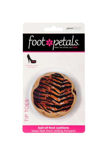 Go wild with this version of Foot Petals' best selling Tip Toes ball-of-foot pads. Tip Toes shoe pads keep feet stable in even the highest of high heels, while cushioning the sensitive ball of foot area with every step. Go from working all day to dancing the night away! Triple pack safari prints; 1 pair tiger, 1 pair zebra and 1 pair leopard.