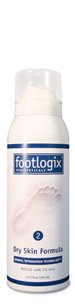 - Footlogix Dry skin formula - 2 is an effective way to maintain the health of normal to dry skin. After a few applications, cracked and dry skin is relieved, with the redness and pain eliminated by this light and creamy foam. Tested by dermatologists and found useful to moisturize and treat flaky feet, this rich and well-tolerated product also prepares the skin for corn or callus reduction or removal