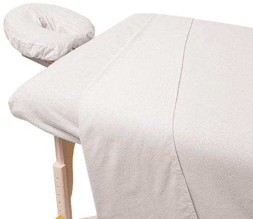 For Pro premium flannel sheet 3-piece set is premium 150 GSM 100% cotton. Set includes generous 63 inch x 100 inch size flat sheet, 36 inch x 77 inch x 7 inch fitted sheet and fitted face rest cover. Durable and long lasting for commercial use. White.