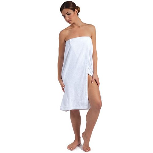 For Pro premium terry spa wrap is 100% cotton for maximum comfort and absorption. Dual-sided terry features extra wide elastic strap for added snugness and velcro closure. Luxurious 300 GSM for total comfort. Long lasting and perfect for retail. White. 33 inch x 57 inch fits most sizes.