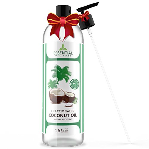 Fractionated Coconut Carrier Oil - Beauty in a Bottle - 100% Pure and Natural Therapeutic Grade - 16 oz with Premium Pump - Perfect for Aromatherapy, Massage, Hair and Skin Care by Essential Oil Labs