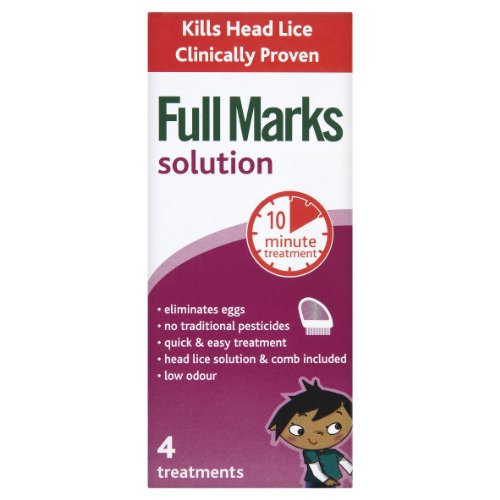 Used according to the instructions, Full Marks Solution kills head lice and eliminates eggs. Unlike traditional head lice treatments which poison the lice, Full Marks Solution has a physical action on the lice causing them to dehydrate (lose water) and die, they can then be removed along with any eggs using the comb provided.