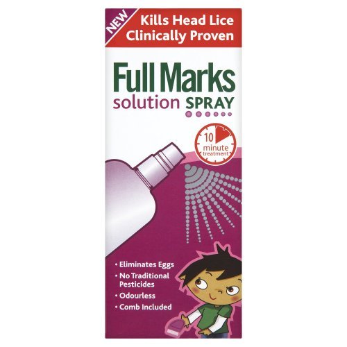 When used according to the instructions, Full Marks Solution Spray will kill head lice and eliminate their eggs. Unlike traditional head lice treatments which poison the lice, Full Marks Solution Spray has a physical action on the lice causing them to dehydrate (lose water) and die. They can then be removed along with any eggs using the fine metal toothed Full Marks Removal Comb provided.