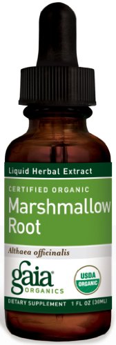 Gaia Herbs Marshmallow Root (Althaea officinalis) Certified Organic. Marshmallow Root a soothing support for mucous membranes. Natural muciage from marshmallow root moistens and cools occasional irritation. The marshmallow plant thrives in wet areas and grows primarily in marshes. Originally from Europe, it now grows in the United States as well. The root and leaves are used medicinally. Marshmallow root has been poulticed on bruises, muscle aches, sprains, burns, and inflammations. A tea of the leaves has been used to soothe sore throat and as an expectorant in bronchitis and whooping cough. Like many members of the mallow family, its tea is considered soothing to an upset stomach. Both the fresh and dried leaves have been used for similar conditions as the root but are considered somewhat weaker.
