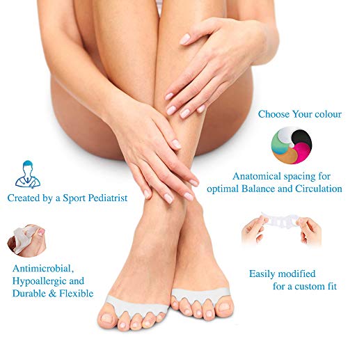 Our Toe Separators Prevent Foot Problems: Bunion toe, Hammer toe, Overlapping toes, Сorns, Сalluses, Plantar fasciitis, Hallux Valgus, Claw toe, Ingrown toenails, Mallet toe, Misshaped Toes, Crooked Toes, Deformed and Bent Toes, Friction from sports, Sore Toe, Bunions, Pedicure toes, Pain in the joints. Show your feet the love that they deserve.
