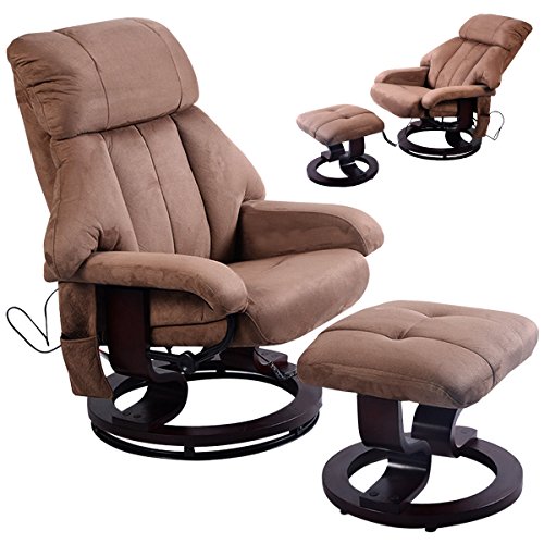 Enjoy A Relaxing Massage In The Comfort Of Your Own Home With The Comfort Products 8-Motor Massage Recliner With Heat. Whether Reclined And Watching A Movie Or Sitting In Silence And Enjoying A Gentle Massage, The Microfiber Upholstery Provides A Comforting Feel For An Exceptional Experience. Perfect For The Home Office Or The Sun Room, This Chair Offers 9 Different Pre-Programmed Massage Modes That Vary Between Locations Being Massaged. Choose Between 5 Intensity Levels To Achieve The Level Of Massage Best Suited For Your Needs. Eight Vibration Motors Target 4 Massage Zones In The Upper And Lower Back, Thighs And Calves, Allowing The User To Use All Four Zones At Once Or Select Zones Individually For A More Focused Approach. Had A Long Day Of Working Hard? A Soothing Lumbar Heat Option Will Melt Away The Stress And Strain Of A Long Day. An Ottoman With A Vibration Massage Feature Allows You To Receive A Relaxing Massage From Head To Toe. This Chair Features A Beautiful Light Wood Colored Base For Added Stability, A Swivel Function, Adjustable Recline And The Ability To Support Up To 250 Lbs. With All The Features Of The 8-Motor Massage Recliner, You Might Never Want To Leave The Comfort Of Your Own Home.