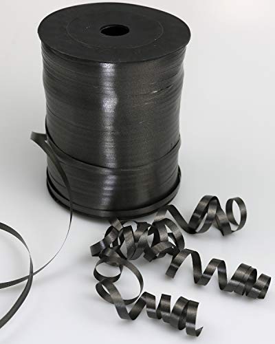 Black Curling Ribbon. Use this curling ribbon to add frills here and there! It's ideal for creating balloon strings or tying to wedding gifts, holiday packages or birthday presents! Use it to decorate at parties by putting coiled ribbons on tables or in glasses! This strong, deep crimp polypropylene ribbon is 100% waterproof. 500 yards.
