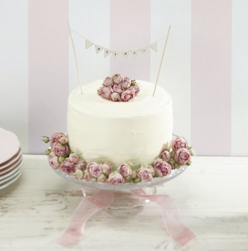 This splendid miniature wedding cake bunting is an unusual and altogether different topper for a wedding cake. Tiny Ivory triangle cotton flags printed with Mr and Mrs swing between two small sticks.