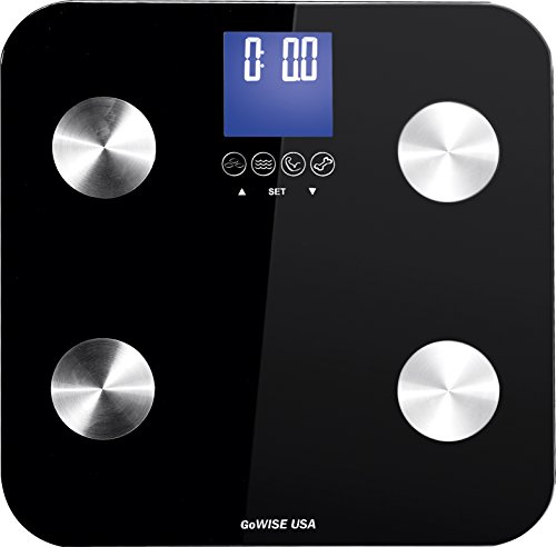 GoWISE USA Slim Digital Bathroom Scale - Measures Weight, Body Fat, Water, & Bone Mass 400 Lbs Capacity Tempered Glass (Black)