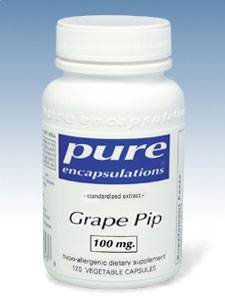 Grape Pip 100 mg 120 vcapsPure Encapsulations products may only be purchased by Health Care Professionals. Patients who want to buy Pure Encapsulations products may obtain them from their Health Care Professionals.Powerful antioxidant and vascular support *Grape pips (seeds) are a potent source of proanthocyanidins, or pycnogenols. This grape pip extract contains 92-95% pycnogenols by weight. Jacques Masquelier, Ph.D., who pioneered proanthocyanidin research and coined the term pycnogenol, used the grape seed extract in his second phase of proanthocyanidin investigation