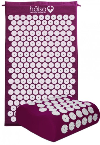 The halsa acupressure set includes the halsa mat and the halsa pillow. About the mat The hälsa wellness mat provides relaxation and natural pain relief. If you experience back pain, insomnia, migraine headaches, or simply want to relax after a long or stressful day, the hälsa wellness mat might be able to help. These mats are widely used in Europe, primarily in Sweden, where the hälsa mat was designed. The mat contains 8,820 calibrated acupressure points to provide the most beneficial experience. Made of 100% cotton fabric, plastic spikes (ABS plastic), and foam core. Width: 16.5" Height: 28.5" Depth: 1" Spike depth: 1/8" About the pillow The Halsa pillow has 2,100 spikes that are cushened by a comfort memory foam. This combination offers a wonderful head massage that compliments the relaxation of the Halsa mat. Made of 100% cotton fabric, plastic spikes (ABS plastic), and foam core. Width: 12" Height: low point 3.5", high point 4" Depth: 10" Spike depth: 1/8"