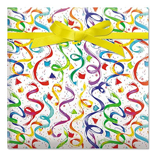 Your gift is sure to be one of the most festive looking at any celebration when it's wrapped in this heavyweight paper covered with streamers in a rainbow of colors! And, our heavyweight, boutique-quality wrapping paper is so thick you can't sneak a peek through it! Ribbons not included. Printed in the USA. Peek-proof Supersized to 23" x 38' - a whopping 72 sq. ft. Wraps 18 shirt-sized boxes Great for big gifts.