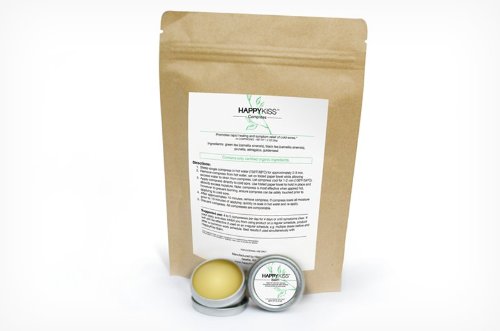 The HappyKiss Compress and Balm work together to promote rapid healing, prevention and symptom relief of cold sores. Produced with the highest quality organic ingredients; the the Compress and Balm work to directly reduce the inflammation and pain associated with cold sores, while helping to restore and heal the affected area. The heated Compress combines five organic herbs and is directly applied to the cold sore. Both symptom relief and healing time are significantly improved, from up to two weeks with no treatment, to just a few days. The Balm supports a soothing and repairing environment for the lips while combating the infection through anti-viral and anti-bacterial properties, specifically chosen to target the herpes virus. Continued Balm use can help revitalize and renew your lips, and even help to prevent future cold sore outbreaks. The Balm is a perfect solution for anyone seeking healthier, softer lips.* Compress Suggested Use: 4 to 5 compresses per day for 4 days or until symptoms clear. If your daily activities inhibit you from using product on a regular schedule, product will still be effective if used on an irregular schedule, e.g. multiple doses before and after a common work schedule. Best results if used simultaneously with HappyKiss Balm and at the first sign of symptoms. Compress Ingredients: organic green tea (camellia sinensis), organic black tea (camellia sinensis), organic prunella, organic astragalus, and organic goldenseal.