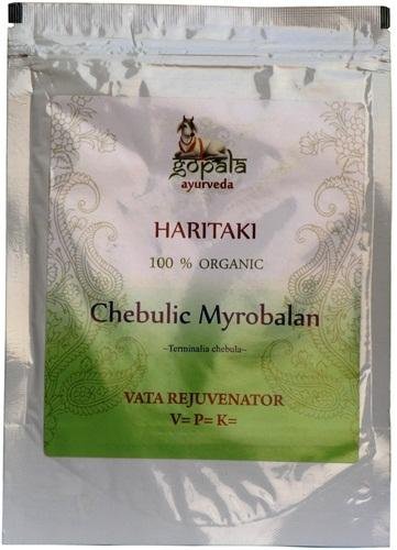 Haritaki is a powerful detoxifier and digestive aide in Ayurvedic medicine. Although the benefits of the Haritaki herb extend throughout the body, it principally acts on the colon and lower digestive tract. Haritaki is a cleansing ayurvedic herb that can provide remarkable benefits to different types of digestive ailments. Depending upon dosage, Haritaki can relieve diarrhea or constipation as its cleansing and clearing actions remove accumulated matter from the lower intestines and colon which stimulates the final digestive process and improves nutrient absorption and stool quality. Consequently, Haritaki greatly supports the detoxification of the entire body by cleansing the lower digestive tract. This Haritaki is 100% USDA Certified Organic free of any animal products. As with all our products at Gopala Organic, this Haritaki was grown with care and love at our jungle farm in Karnataka, India.