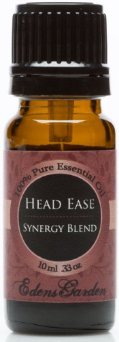 * Name: Head Ease Essential Oil Synergy Blend * Contains: Basil, Chamomile, Frankincense, Lavender, Peppermint, Rosemary, Sweet Marjoram and Wintergreen. * Usage: Created for the discomforts associated with headaches to provide calming comfort. Helps fight tension, so you can relax. This synergy blend contains 100% pure essential oils. We recommend a 3 to 5% dilution for topical body applications. * Cautions: It is possible that this blend may cause sensitivities; users are recommended to use these blends only in dilution and not as a replacement for traditional medicine. For external use only.