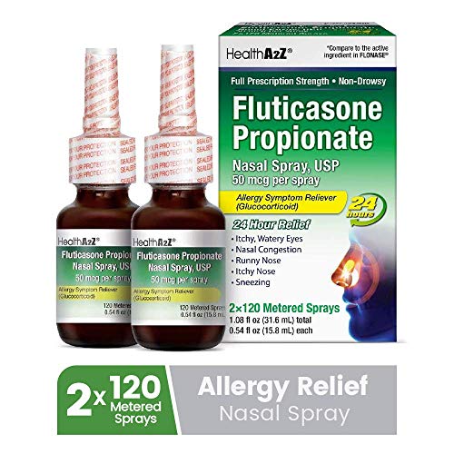 - 24-HOUR ALLERGY RELIEF: HealthA2Z Fluticasone Propionate Nasal Spray temporarily relieves symptoms of hay fever or other upper respiratory allergies: Itchy, Watery Eyes, Nasal Congestion, Runny Nose, Itchy Nose, Sneezing.