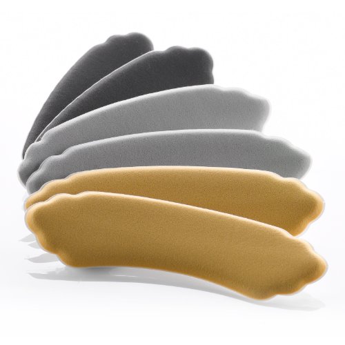 This Heavenly Heelz Back-of-Heel Cushions 1-Butter 1-Black 1-Silver Pairs - Foot Petals #BHHF6030 helps keep your heels from slipping in and out of shoes! Plus they are a multi-functional cushion that not only helps prevent blisters on your heels, but can also be used at the inside top of a mule, boot or slide to ease friction or help with sizing. Try them with your hosiery to stop runs and prevent slipping and sliding. Get three pairs in the value pack!
