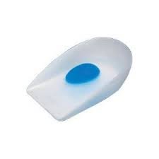 This "Blue Dot" area is made of a softer silicone to help cushion the heel for greater comfort underfoot. The cupped design forces the fatty pad of the heel (the body's own natural defense against skeletal shock) downward for extra protection.