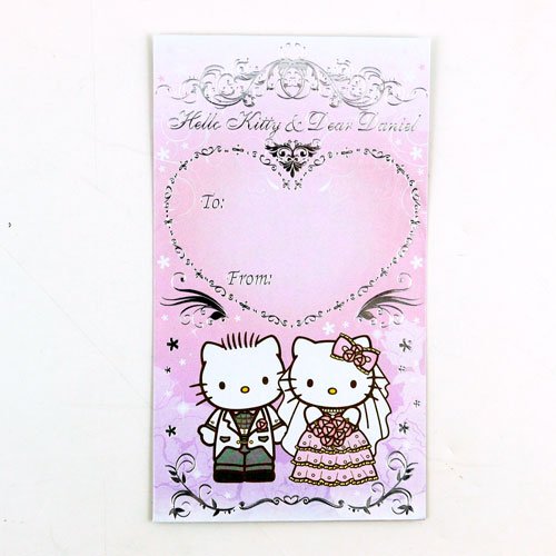 A classy way to give a wedding gift to the bride and groom. This beautiful envelope has embossed silver design, a die cut back flap and beautifully designed graphics of Hello Kitty and Dear Daniel with delicate floral illustration.
