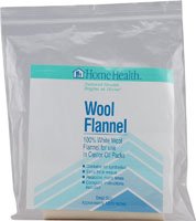 Home Health Wool Flannel Small Description: Wool Flannel 100% white wool flannel for use in castor oil packs Wool Flannel is used in the preparation and use of castor oil packs. Usage: Fold the wool flannel in two to four thicknesses to a size large enough to cover the body area involved. For abdominal application, the folded cloth should measure about 10 inches.