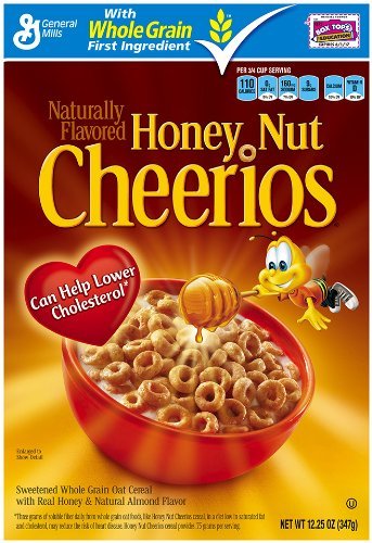 Honey Nut Cheerios cereal is a great tasting way to help lower your cholesterol. It's made with real honey for a delicious sweet taste and soluble fiber from whole grain oats to help lower your cholesterol.