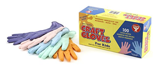Make after-project clean up time a breeze. Simply peel off gloves and throw away after use. You can use your craft gloves during painting projects, as well as with other messy crafts that will leave color on your hands such as dippity dye, marker or even crayon projects. Craft gloves can also alleviate headaches involved in sticky substance projects like clay and dough letter forming. Kids still get the tactile experience without lodging little bits of dough into the tiny crevices of their fingers and hands. Craft gloves can even help children with sensitive skin avoid irritation and reactions (Note: For children with highly sensitive skin or allergies, a doctor should be consulted before use). Craft gloves can also be used when you need a little "silly time" for kids to unwind. Blow up craft gloves and draw faces on each finger or palm to make zany balloons. Fill with water and have a water contest on hot summer days. Fill with beans, flour or kernels and tie the end to make soothing bean bags. Challenge kids to come up with more amusing uses for these helpful items. Our latex craft gloves have a corn starch coating for easy on and off and the cheerful pastel colors will brighten up your classroom before you've even begun crafting. Yes, you could spend hours scrubbing the paint and other craft residue off of everyone's hands, but why bother? Combine craft gloves with our disposable craft cups and you have just alleviated all the hassle involved in cleaning up after interactive projects. Let kids take part in every aspect of the learning process without worrying about the mess it will leave behind, thanks to latex craft gloves from Hygloss.