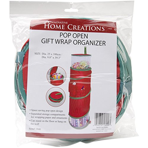 GENERAL PRODUCTS-Pop Open Gift Wrap Organizer. This pop open bag is a convenient way to store and organize your gift wrap. It features separated storage compartments for ornaments and wrapping paper. It can stand on the floor or hang on the wall to save even more space. This package contains one pop open bag that measures 9.8 Inch in diameter and is 39.3 Inch tall. Imported.