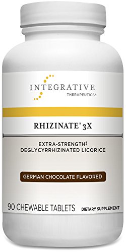 Rhizinate 3X extra-strength deglycyrrhizinated licorice stimulates the natural protective factors in the digestive tract which help relieve occasional stomach discomfort. In Rhizinate 3X, the glycyrrhizin compound-associated with high blood pressure-has been removed. This unique chewable formula allows DGL to mix with saliva for faster action on the gastric mucosa.