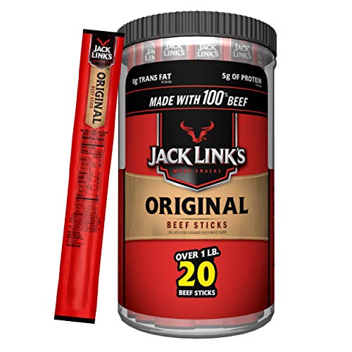 Jack Link's Beef Sticks, Original, 0.92 Ounce (20 Count) - Great Protein Snack, Meat Stick with 5g of Protein, Made with 100% Premium Beef, No Added MSG