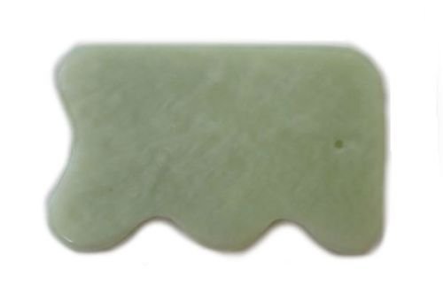 This Gua Sha tool is hand made from Chinese Jade. It features smooth and curved edges to use on smooth and curved areas of the body. The picture shows the shape of the tool. The shade and color of Jade will vary.